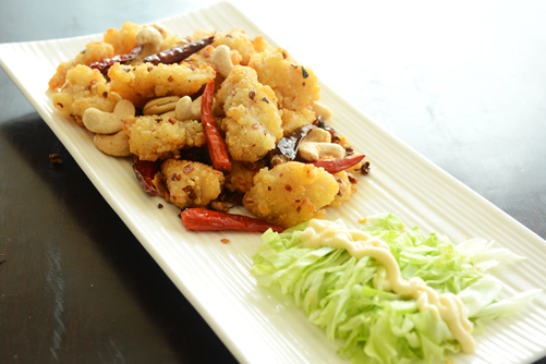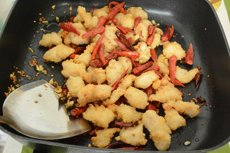 • 材料: 圣農(nóng)鹽酥雞1包 干紅辣椒15個 大蒜瓣3個 生姜4片 腰果20個 花椒3茶匙 食用油2茶匙 步驟: 干紅辣椒切丁,蒜瓣、生姜切末 鹽酥雞炸好備用 將蒜蓉、姜末倒入中火油鍋煸香,然后放入辣椒丁、花椒 放入圣農(nóng)鹽酥雞、腰果,翻炒片刻即可出鍋